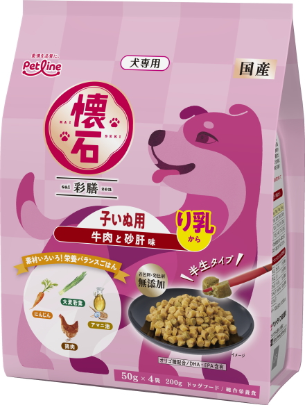 ペットライン 懐石 彩膳 子いぬ用 り乳から 牛肉と砂肝味 200gx12個(ケース販売)
