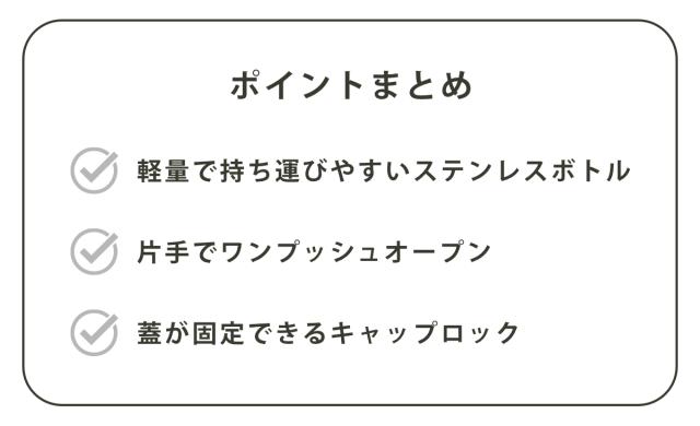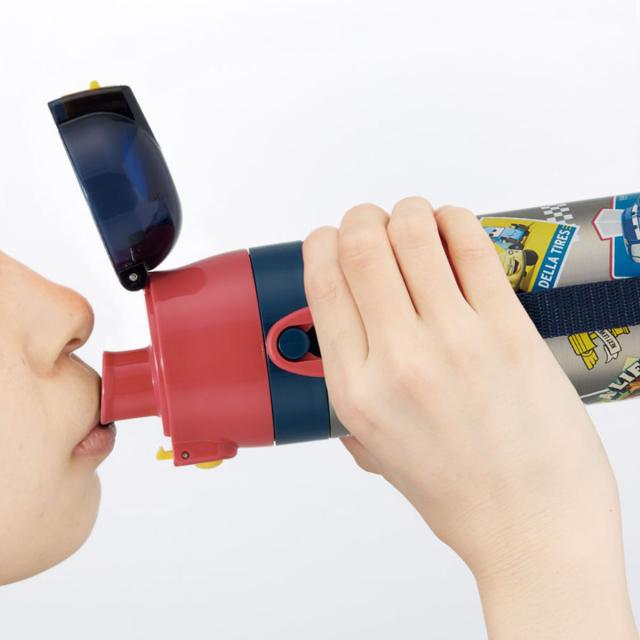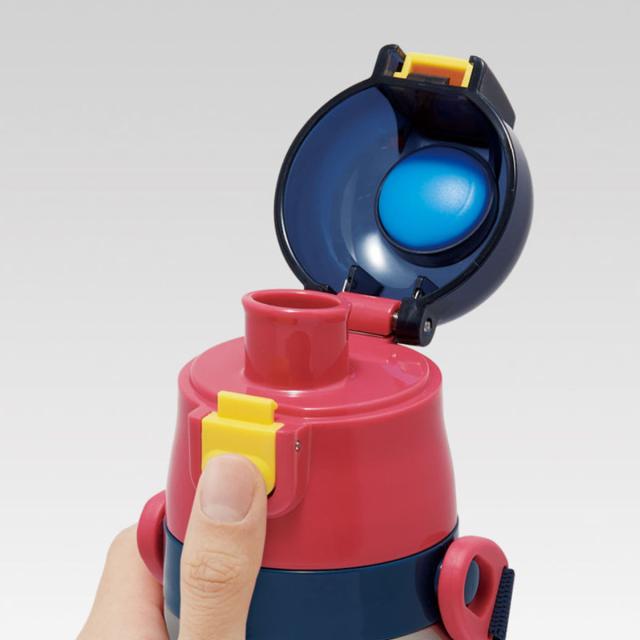 水筒の蓋はボタンを押すだけで開けることができるワンタッチ式です。飲み終わったら蓋をカチッと閉めるだけなので、小さなお子様でも簡単に開閉できます。