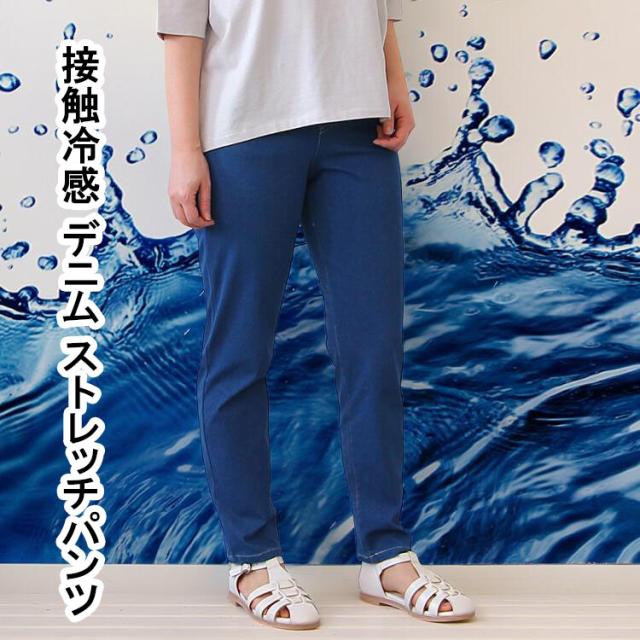 接触冷感 デニム パンツ レディース ストレッチ 夏 涼しい ジーパン ボトムス ズボン ロング丈 冷感 ストレッチパンツ クール 快適 薄手 楽ちん ポケット付