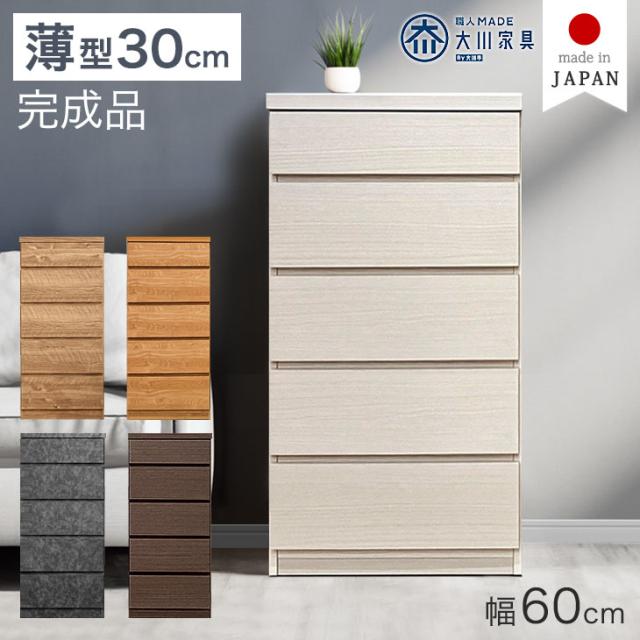 薄型 30cm 5段 チェスト 完成品 幅 60cm 日本製 国産 タンス ほこりが入らない 大容量 キャビネット 箪笥 収納棚 脱衣所 和室 衣類 リビング 収納 ロータイプ 組み立て不要 木製 木目 石目 幅45 幅60 幅75 おしゃれ 北欧