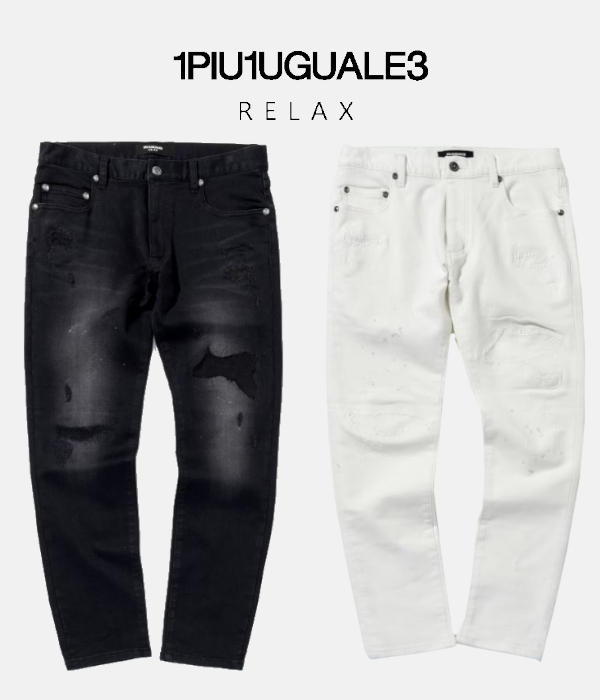 1PIU1UGUALE3 RELAX ウノピゥウノウグァーレトレ リラックス ダメージジョグデニムパンツ メンズ ジーンズ クラッシュ スリム ストレッチ カジュアル