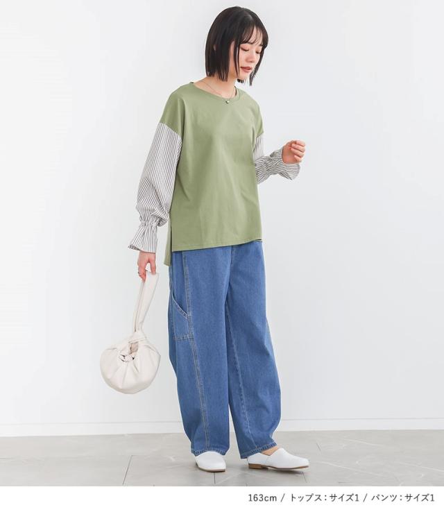 カットソー 長袖 レディース トップス ロンT ブラウス チュニック キャンディースリーブ 異素材 無地 ストライプ柄 綿100% きれいめ 春 夏 秋 Tシャツ スウェット スエット プルオーバー クルーネック ボリューム袖 キャンディスリーブ 袖コンシャス ショート丈 ミディ丈 ミドル丈 配色 コットン100% おうちで洗える カジュアル シンプル ナチュラル キレカジ Sサイズ Mサイズ Lサイズ LLサイズ 3Lサイズ XLサイズ ぽっちゃり 体型カバー 10代 20代 30代 40代 50代 60代 デニム パンツ ボトムス ジーパン ジーンズ サルエルパンツ ペインターパンツ ウエストゴム ロングパンツ ワイドパンツ ロングデニム イージーデニム ワイドデニム イージーパンツ ロング丈 マキシ丈 フルレングス 10分丈 バルーン コクーン ポケット マニッシュ ゆったり ゆる 楽ちん ストレスフリー ブルー スモーキーグリーン 202604 2点セット プレゼント 福袋 コーディネートセット コーデセット 中身が見える福袋 上下セット ギフトセット[ID]11cp077