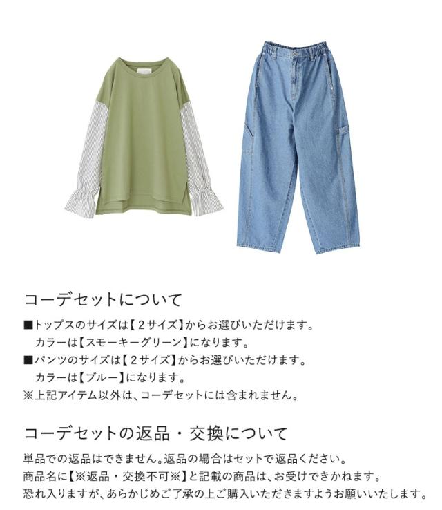 『異素材キャンディースリーブカットソー×サルエルペインターデニムパンツコーデ2点SET』【メール便不可】【40】[2点コーデセット 2026 レディース カットソー 長袖 トップス ロンT デニム パンツ ジーパン]