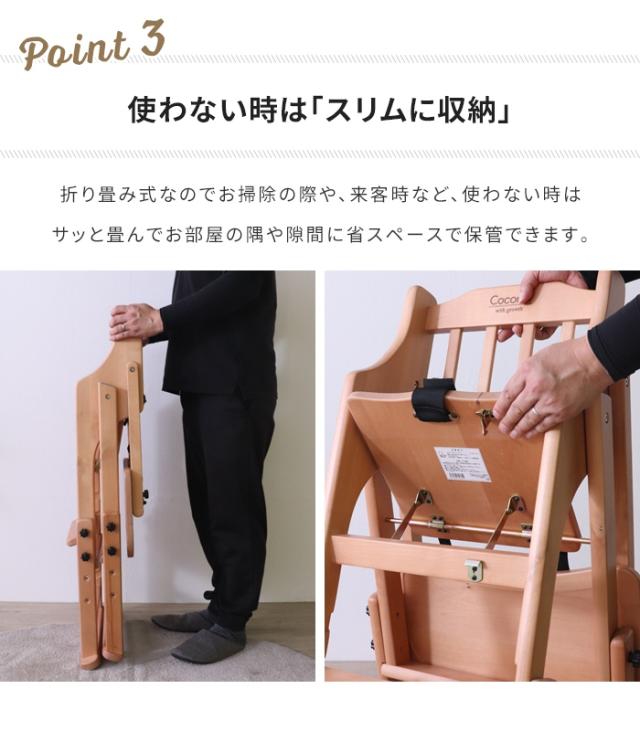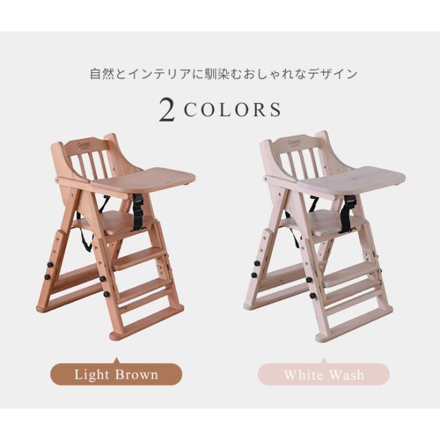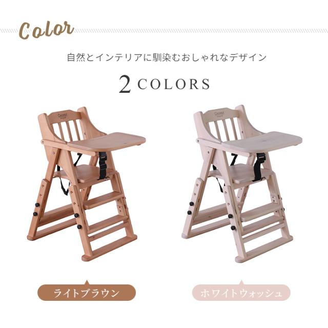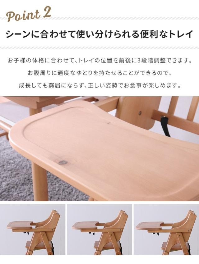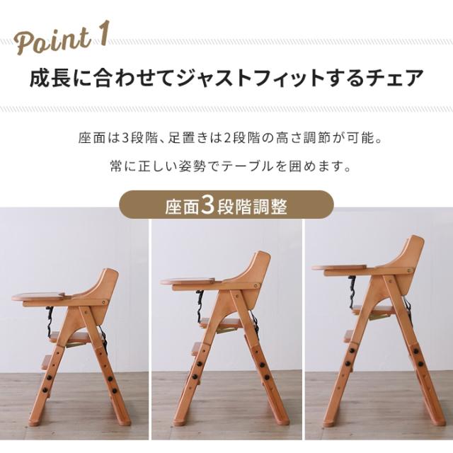 | ・推奨年齢:生後7か月〜(お座りができるようになって)から使用可能 ・折りたたみ式でコンパクトに収納可能 ・トレイ位置3段階調節可 ・座面高3段高さ調節可(42/45/48cm) ・足乗せ2段高さ調節可 ・すべり落ち防止ベルト付き ・床を傷つけにくくするため、フェルトを付属 ・北欧家具にも使われるバーチ材使用 ・ダイニングに馴染むシンプルデザイン |