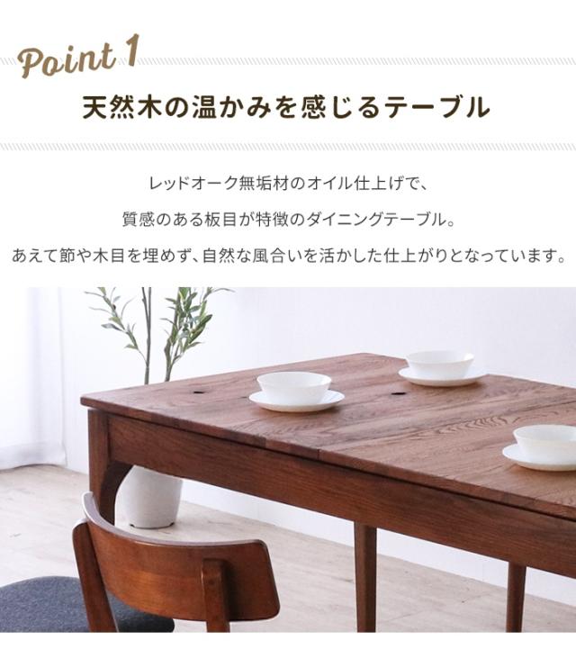 ダイニングテーブル 伸長式 幅150cm/180cm レッドオーク無垢材 エクステンションテーブル テーブル 伸縮 オイル仕上げ 木製テーブル 食卓テーブル 天然木 ブラウン モダン 北欧風 おしゃれ 新生活 一人暮らし