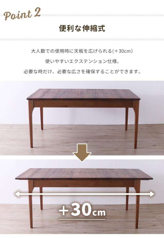 大人数での使用時に天板を広げられる(+30cm)使いやすいエクステンション仕様。