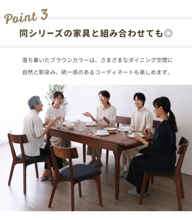 落ち着いたブラウンカラーがダイニング空間に高級感を与え、さまざまなインテリアと調和します。