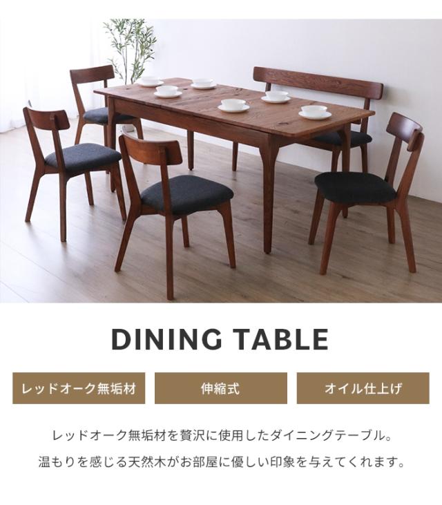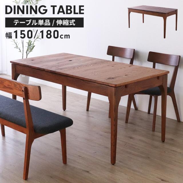 ダイニングテーブル 伸長式 幅150cm/180cm レッドオーク無垢材 エクステンションテーブル テーブル 伸縮 オイル仕上げ 木製テーブル 食卓テーブル 天然木 ブラウン モダン 北欧風 おしゃれ 新生活 一人暮らし