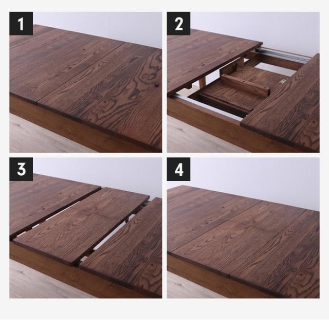 大人数での使用時に天板を広げられる(+30cm)使いやすいエクステンション仕様。