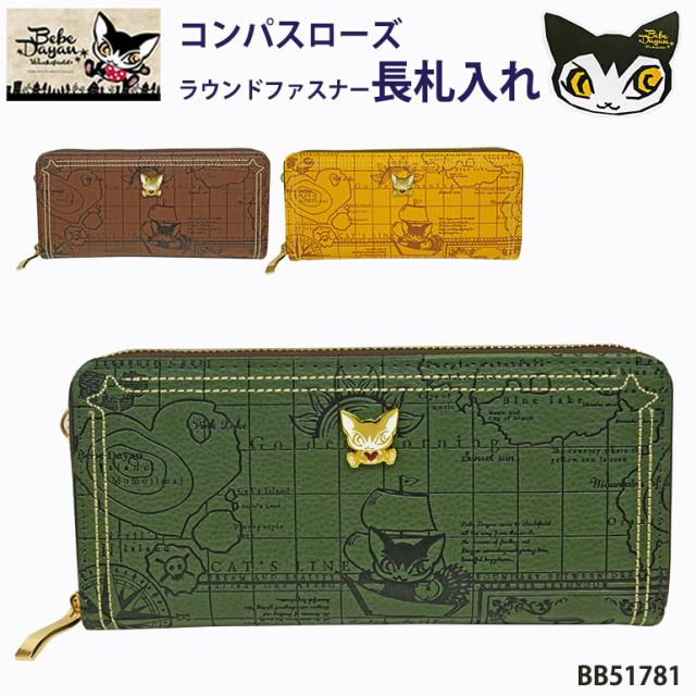 ベベダヤン 猫 ねこ ネコ 財布 サイフ 長財布 長札入 海図 型押し 24ポケット 大容量 ラウンドファスナー わちふぃーるど キャラクター レディース 女性 猫雑貨 猫柄 使いやすい ポケット たくさん グッズ 合皮 アンティーク風 おしゃれ かわいい 人気 プレゼント BB51781