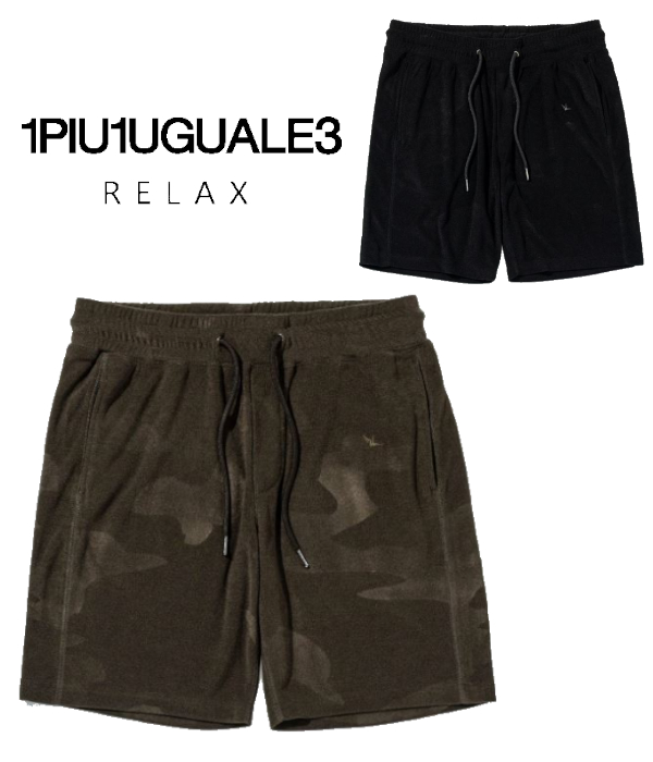 1PIU1UGUALE3 RELAX ウノピゥウノウグァーレトレ リラックス カモ柄エンボスパイルショーツ メンズ ハーフパンツ 短パン カジュアル 迷彩 ルームウェア