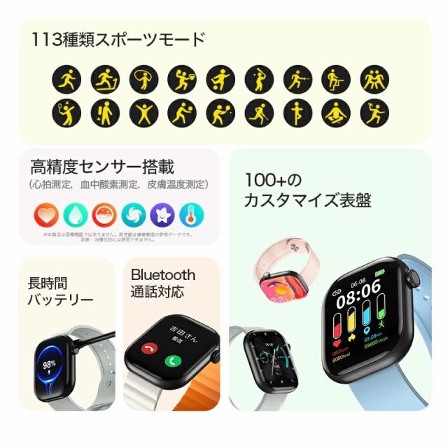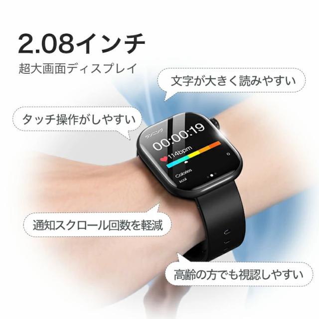 スマートウォッチ 楽天1位 2.08インチ超大画面&Bluetooth5.4 進化版 通話機能 レディース メンズ 腕時計 健康管理 心拍数 24時間測定 ランニング ランニングウォッチ iPhone対応 android対応 ギフト 母の日 新生活