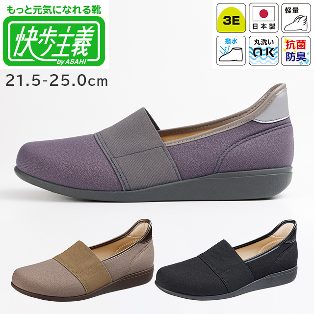 快歩主義 L178(3E) 21.5-25.0cm 両足販売 アサヒシューズ【レディーススリッポン シニアシューズ ミセス世代 60代 70代 つまづきにくい 歩きやすい 足の負担を軽減 歩行サポート ハンズフリーシューズ 日本製】