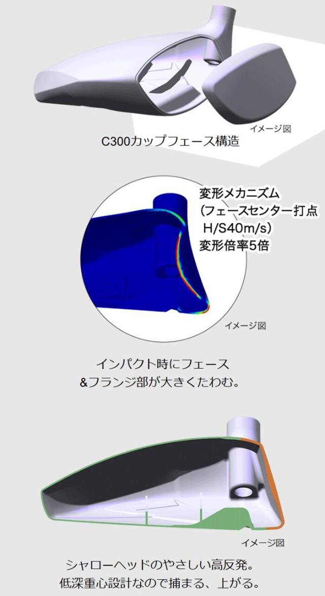 SUPER egg フェアウェイウッドは、C300カップフェース、限界に迫る薄肉フェース設計、