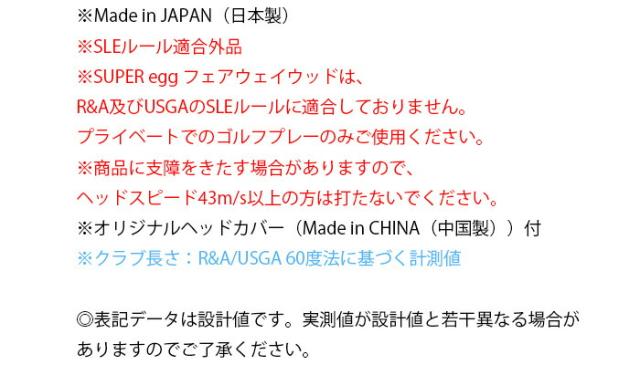 ※SUPER egg フェアウェイウッドは、R&A及びUSGAのSLEルールに適合しておりません。プライベートでのゴルフプレーのみご使用ください。