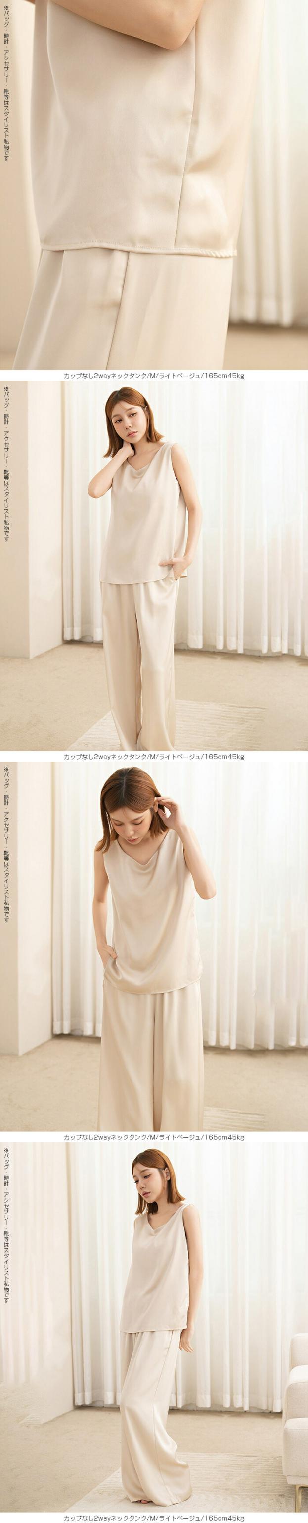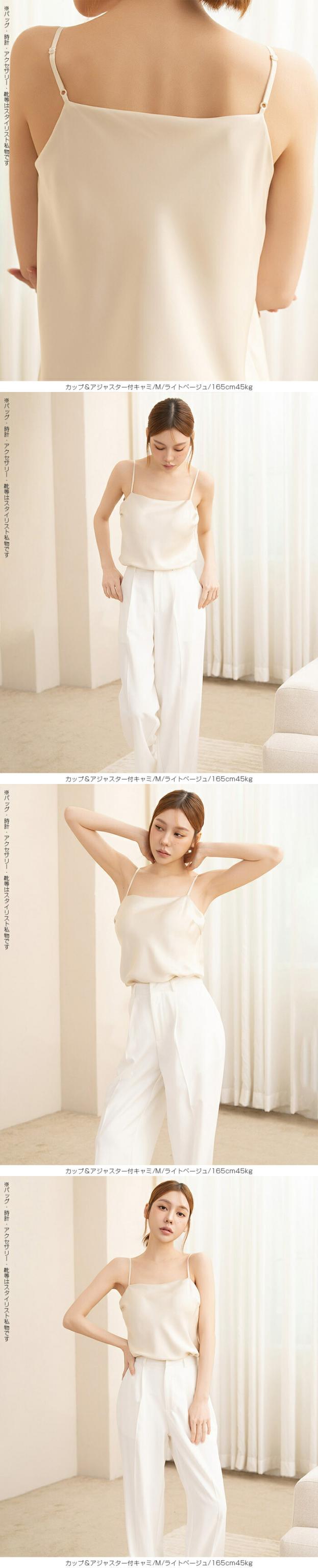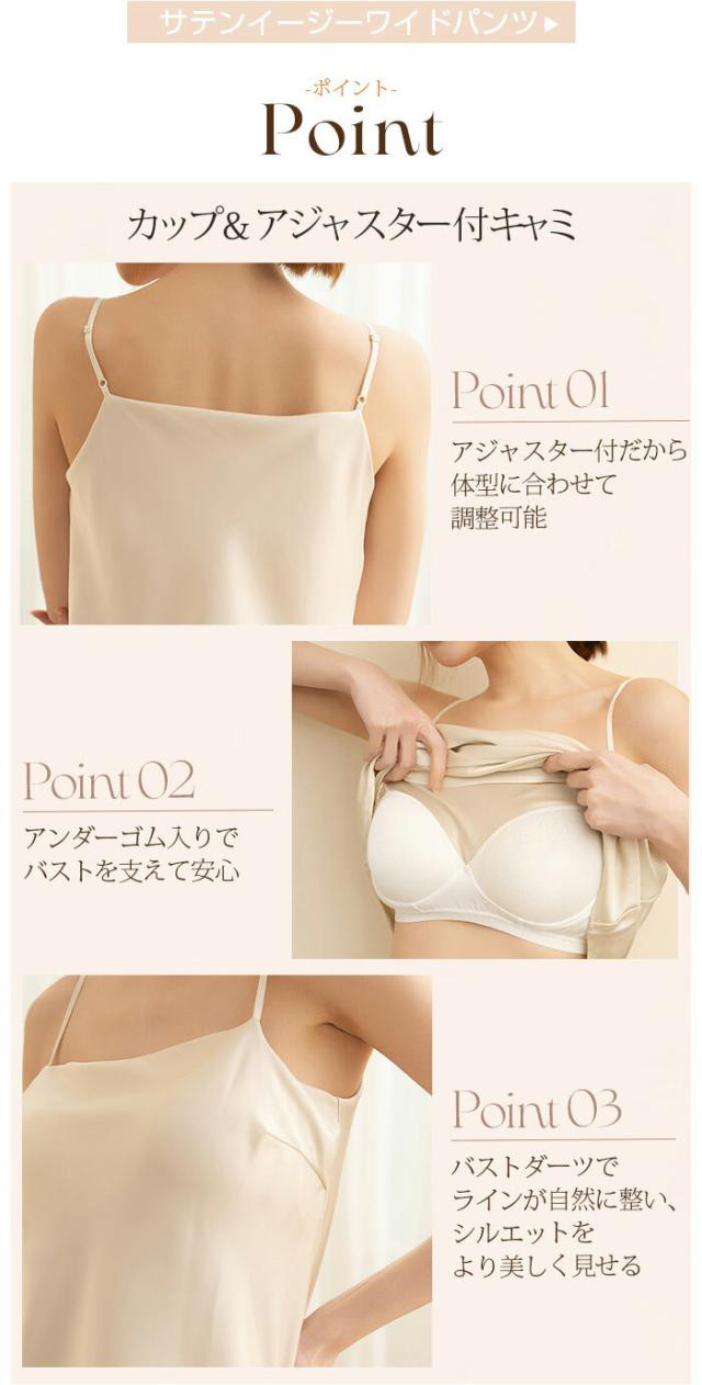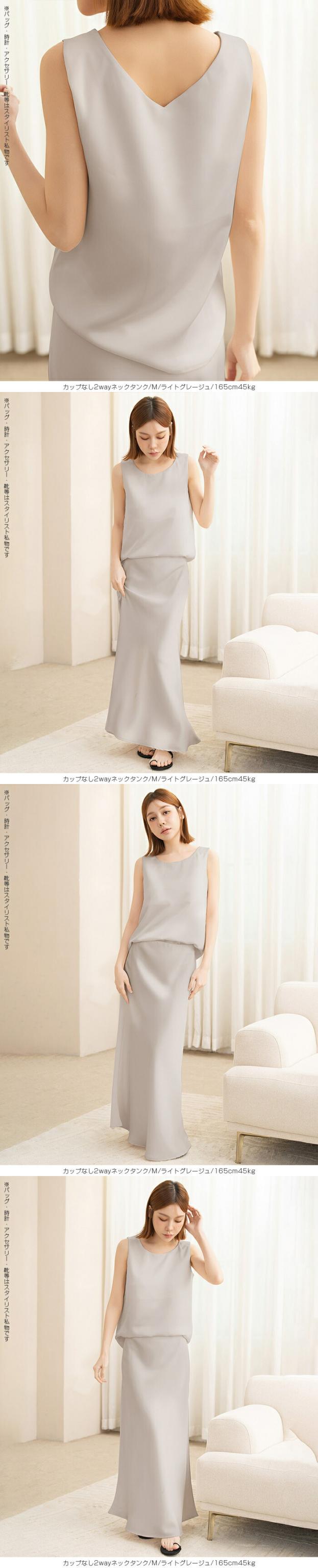 【カップ付きサテンキャミ&前後2wayサテンタンク】 サテン素材で肌触りが良く、リラックスした着心地で人気のサテンシリーズ。 デイリー使いにもおしゃれなコーディネートにもぴったりなアイテムで、シンプルながらも大人の上品さを引き立てます。 カップ付きサテンキャミ は、ブラジャーなしでも安心して着られるカップ付きデザイン。 シンプルでありながらも美しいラインを作り、 どんなスタイルにも合わせやすいアイテムです。 前後2wayサテンタンク は、前後どちらでも着用可能な便利なデザイン。 シンプルでありながらも着回しが効き、 どんなシーンにも対応可能です。 《商品ポイント》 カップ付きサテンキャミ: カップ付きでブラジャーなしでも安心 軽やかなサテン素材で肌触り抜群 シンプルでありながら上品なデザイン 絶妙なフィット感で美しいシルエット 前後2wayサテンタンク: 前後どちらでも着用可能な2wayデザイン しっとりとしたサテン生地で涼しさをキープ ストレートシルエットでリラックスした着心地 シンプルで着回しやすい 《デザイン・シルエット》 カップ付きサテンキャミ:Vネックデザインでデコルテを美しく見せ、肩ひもは細めで軽やかな印象。 美しいサテン生地が、どんなアイテムとも合わせやすく、 大人の上品さを引き立てます。 前後2wayサテンタンク:シンプルなデザインながら、前後どちらでも着られるので、 気分やコーディネートに合わせて使えます。 ストレートシルエットで、どんなボトムとも相性抜群です。 《コーディネート提案》 カップ付きサテンキャミ:デニムパンツやワイドパンツと合わせてカジュアルダウン ジャケットやスカートと合わせて、ドレッシーに ロングカーディガンやトレンチコートを羽織って、上品な大人のスタイルに ブラ不要だから、シアートップスのインナーにもおすすめ。 前後2wayサテンタンク:デニムやスカートと合わせてシンプルに ボトムスにはワイドパンツやリネンパンツを合わせて、リラックスした日常のスタイル シックなジャケットやカーディガンと合わせて、カジュアルでもフォーマルでも対応 《サイズ・カラーバリエーション》 サイズ:カップ&アジャスター付/キャミ…M / L / XL カップなし/2wayネック/タンク…M / L タイプ:カップ&アジャスター付/キャミ カップなし/2wayネック/タンク カラー:ブラック / ライトベージュ / エクリュ / グレージュ / ライトグレージュ 《素材・機能性》 ・素材:ポリエステル100% ・透け感:ホワイト・淡い色のみ透け感あり ・伸縮性:なし ・厚み:薄手 |