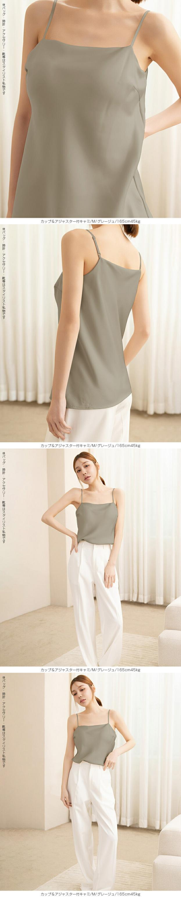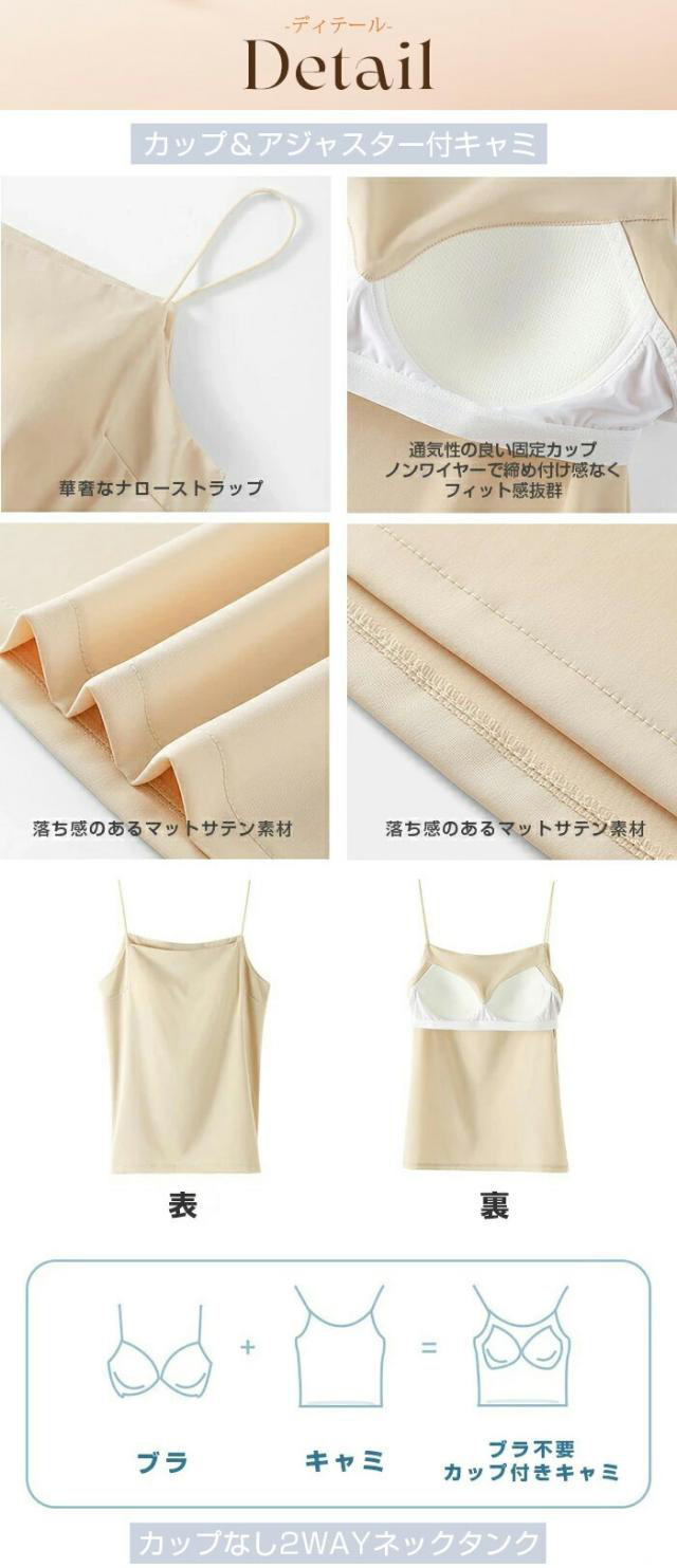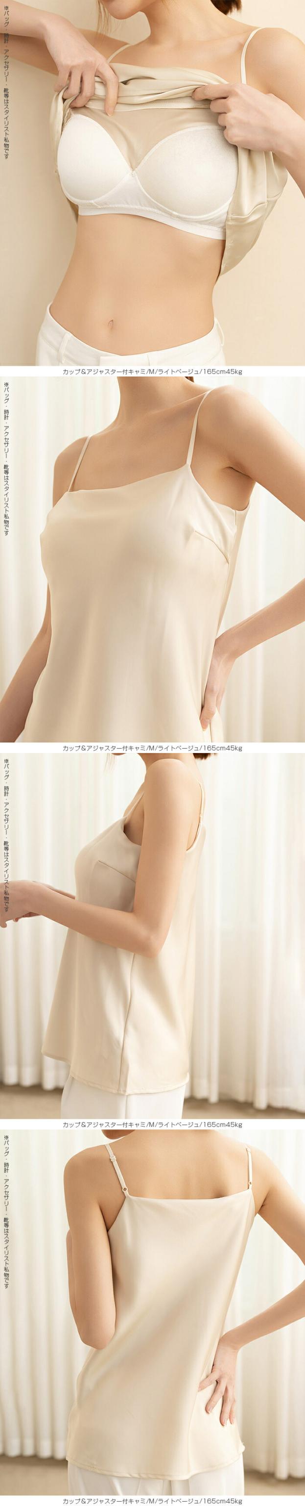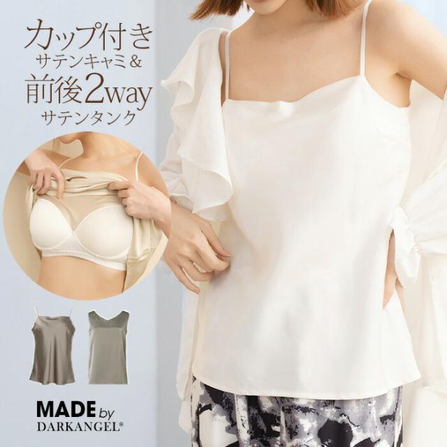 先着33名様50%OFFクーポン!カップ付きタンクキャミ ブラトップ キャミソール サテン サテンキャミソール ブラ レディース ブラ不要 ナローストラップ おしゃれ 立体カップ シルクタッチ 楽ちん 【サテンカップ付きキャミ】 送料無料 春新作 母の日 ダークエンジェル
