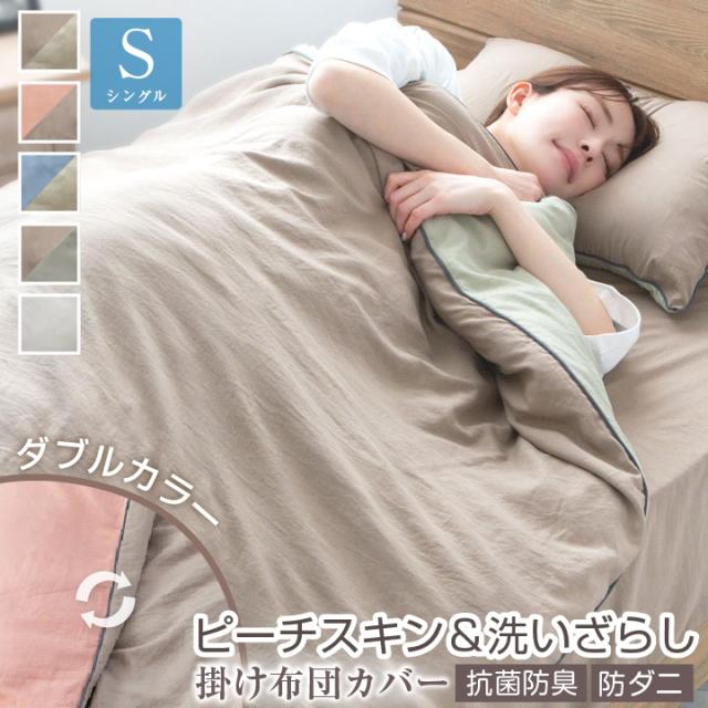 掛け布団カバー シングル バイカラー ダブルカラー リバーシブル 水洗い ピーチスキン なめらか 抗菌防臭 掛けふとんカバー 掛カバー オールシーズン