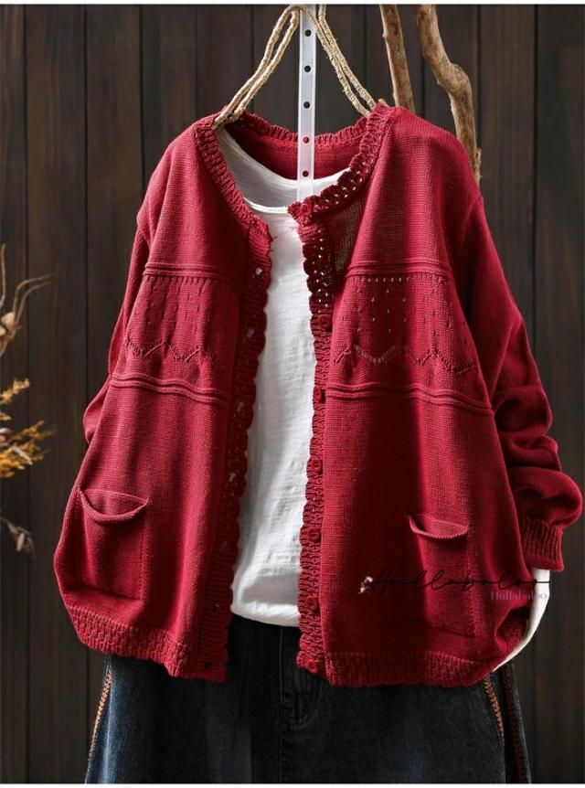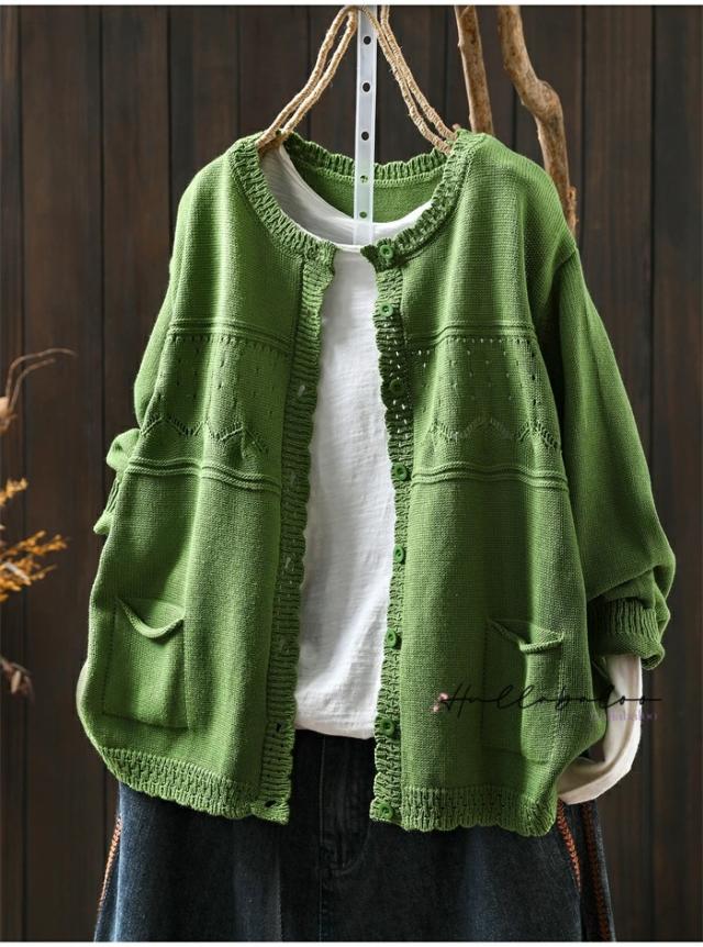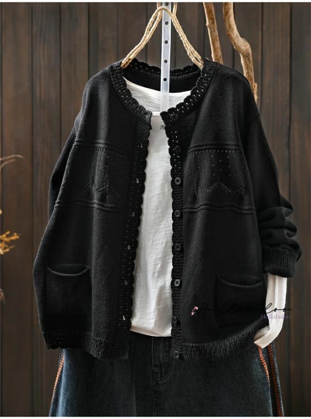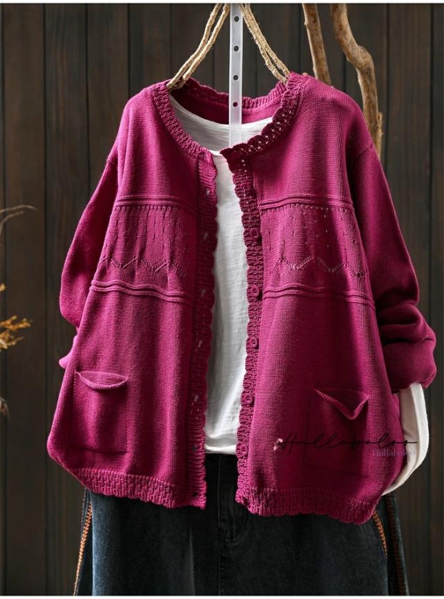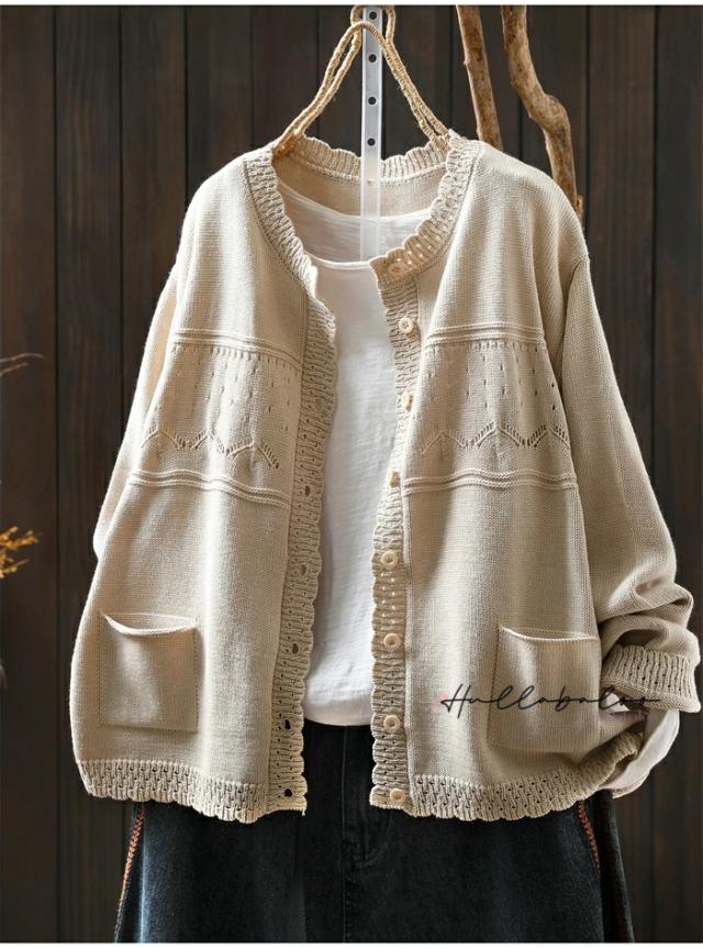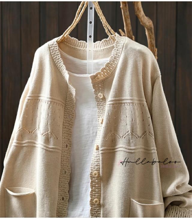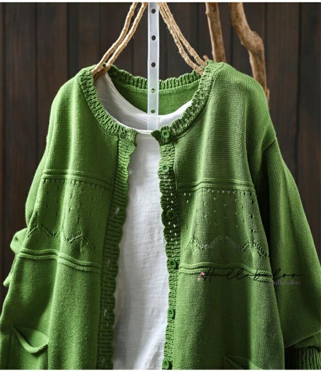 ニットカーディガン レディース 秋 カーディガン 綿 長袖 透し コットン 前開き トップス キレイめ ライトアウター 羽織り コットン ニットカーデ 大人可愛い 大きいサイズ ナチュラル 柔らか ゆったり カジュアル 秋春