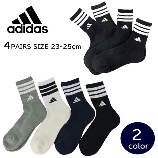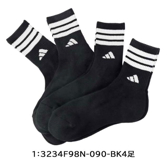 アディダス adidas 靴下 レディース 4足セット 3234F98N ブラック モノトーン クルー丈 ソックス スポーツ ウーマン 23-25cm ab-61146
