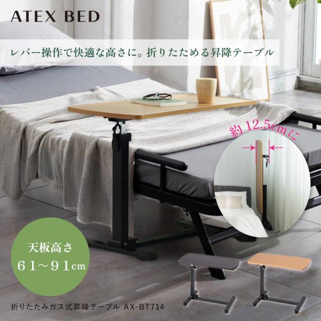 【公式】折りたたみガス式昇降テーブル AX-BT714 アテックス ATEX ベッド テーブル サイドテーブル 省スペース 収納 介護 ベッド関連用品 送料無料 2026