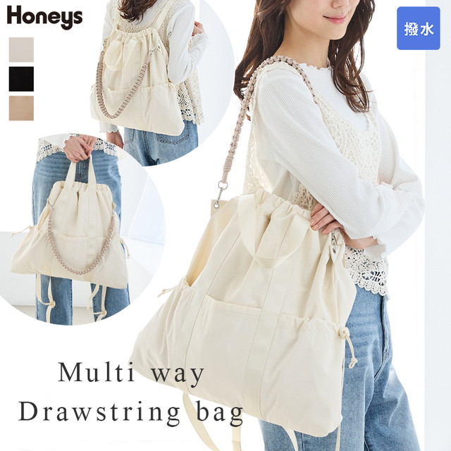ナップザック リュック バッグ 鞄 はっ水 3way オフィス きれいめ マルチway ハンドバッグ レディース Honeys ハニーズ マルチwayナップサック