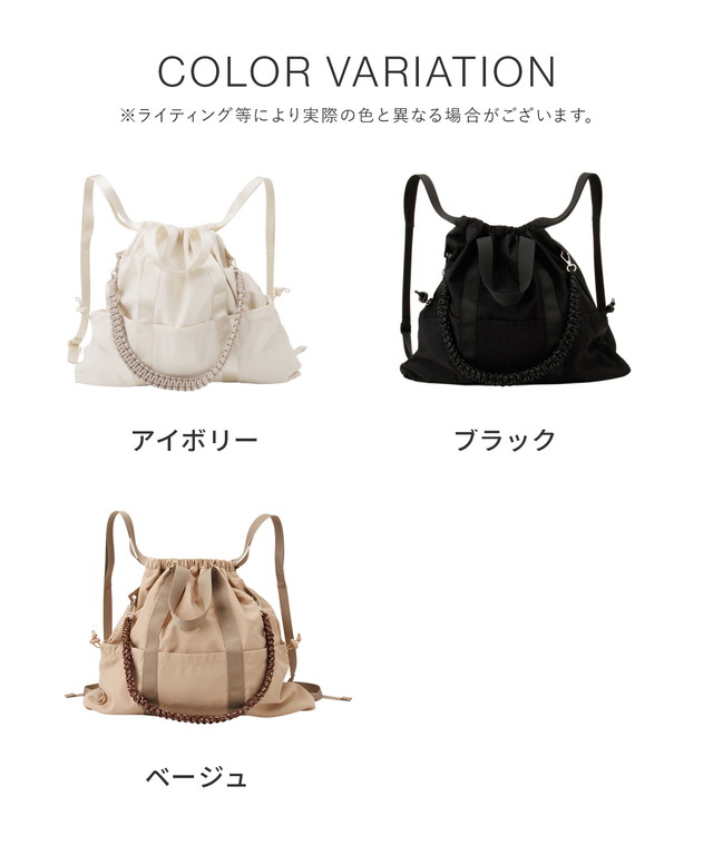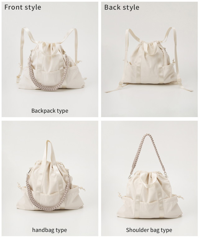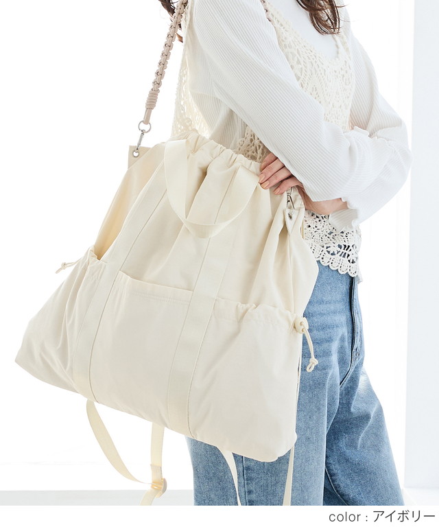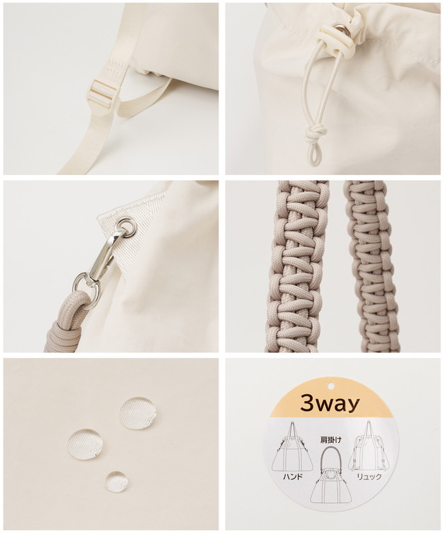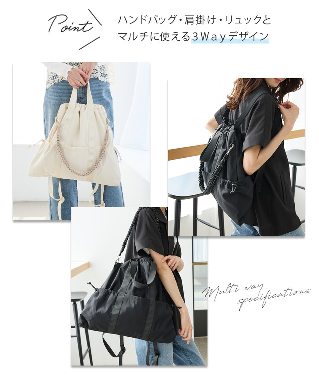 ハンドバッグ・肩掛け・リュックと、マルチに使える3Wayデザイン。