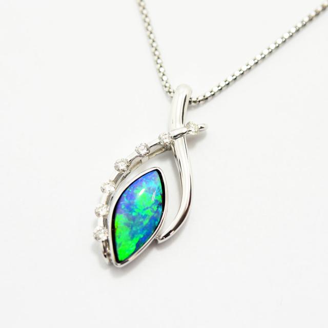 オパールとダイヤモンドをあしらった、上品でエレガントなネックレスです。新品磨き仕上げ済みです。