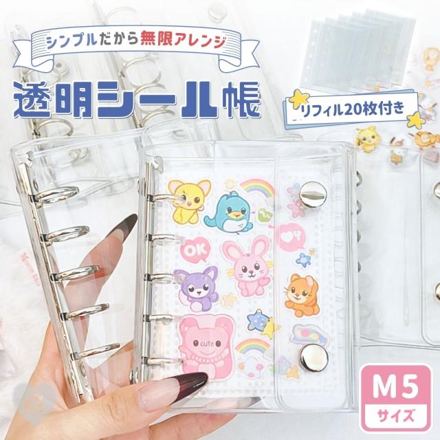 シール帳 [リフィル付き+20枚] サイズ 推し活グッズ PVC バインダー シールバインダー 透明 クリア M5サイズ リング式 手帳 シール収納 ファイル シール整理 コレクション 手帳型 かわいい 女の子 男の子 グッズ トレカ収納 カード収納 写真収納 ミニバインダー シールファイル 透明ファイル カスタマイズ手帳 コラージュノート デコ 手作り プレゼント 文房具 収納ケース 防水 PVC クリアバインダー リフィル対応