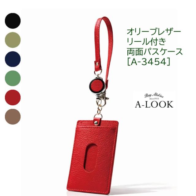 A-LOOK(エールック) オリーブレザー リール付き両面パスケース [A-3454]