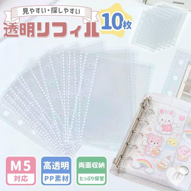 【普通郵便発送】 シール帳用 追加シート リフィル 10枚入り 推し活グッズ バインダー シールバインダー用 透明 クリア M5サイズ リング式 手帳 シール収納 ファイル シール整理 コレクション 手帳型 かわいい 女の子 男の子 グッズ トレカ収納 カード収納 写真収納 ミニバインダー シールファイル 透明ファイル カスタマイズ手帳 コラージュノート デコ 手作り プレゼント 文房具 収納ケース 防水 PVC クリアバインダー用 リフィル対応 推し アイドル