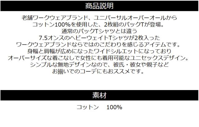 ユニバーサルオーバーオール 2P 7.5オンス ヘビーウエイトTシャツ メンズ 2枚組 ビッグt ワイドシルエット ブランド 無地 tシャツ 半袖 【F4-1562】 通販A3