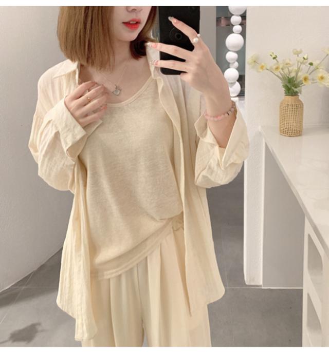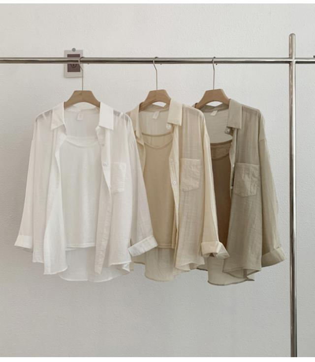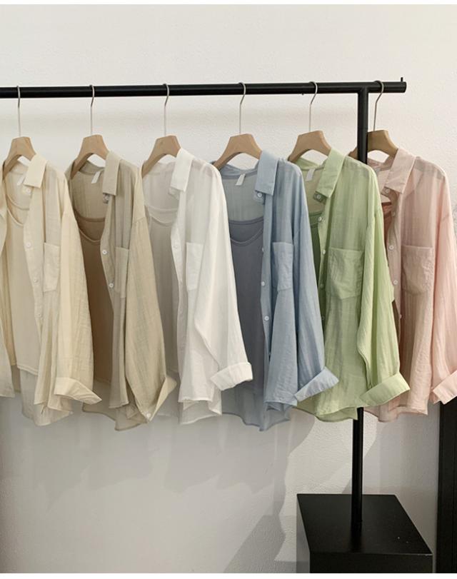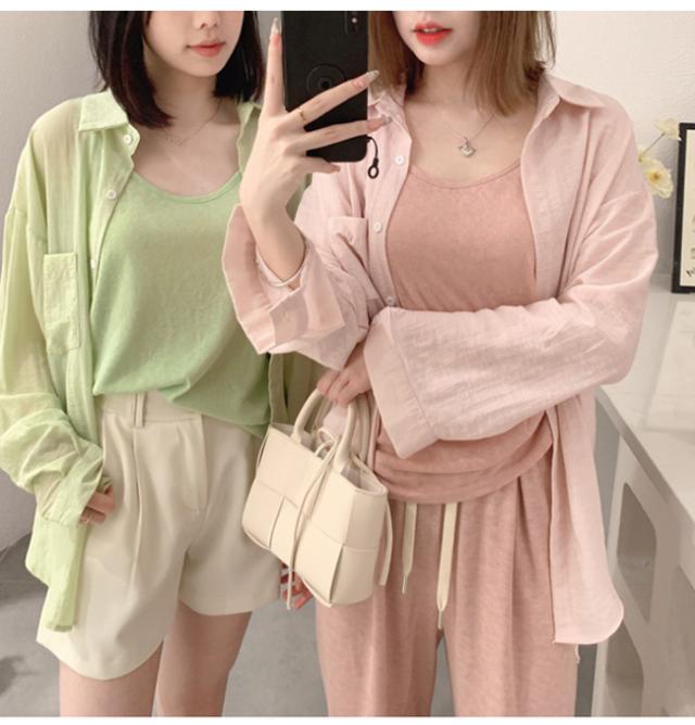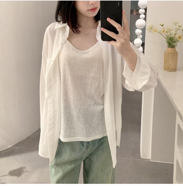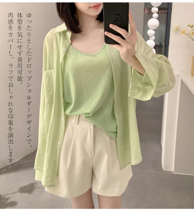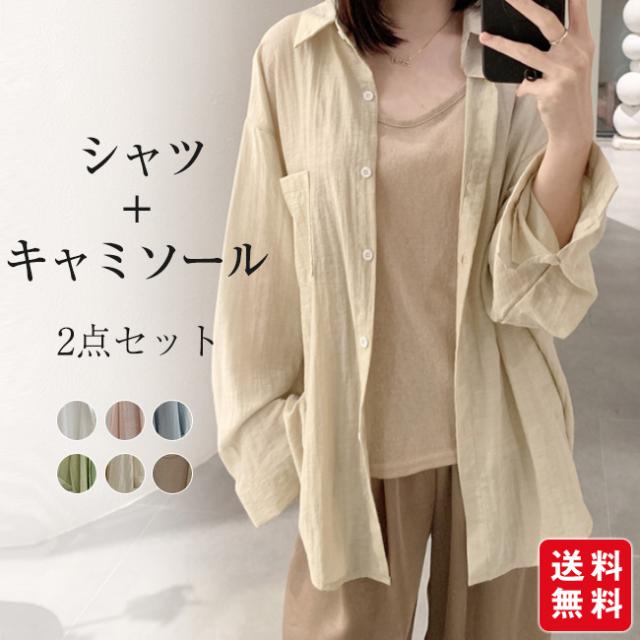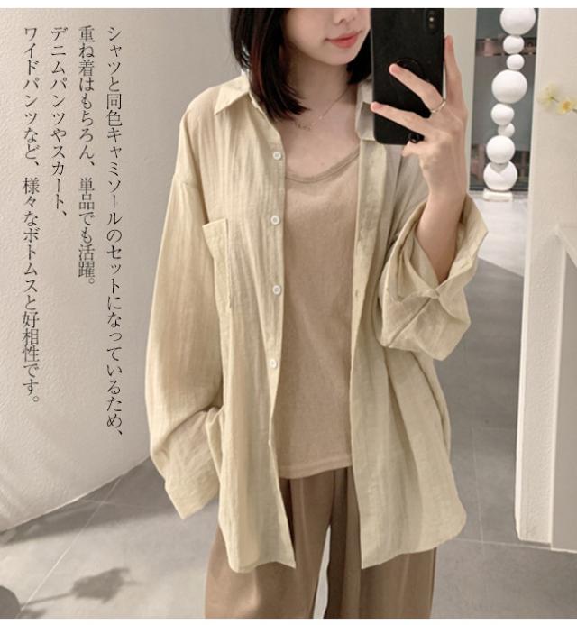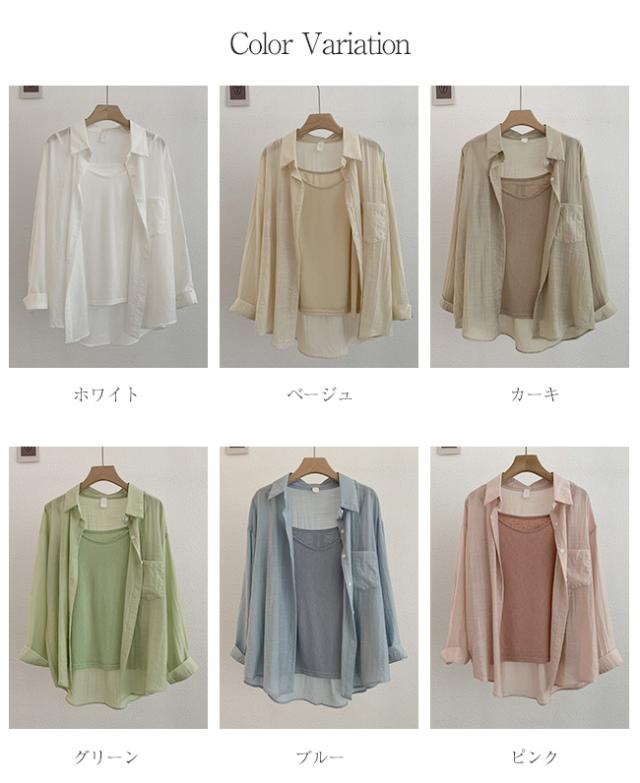 【新発売10%オフクーポン】 2点セット シャツ キャミソール レディース 薄手 長袖 無地 体型カバー カジュアル 透け感 通気性 日焼け対策
