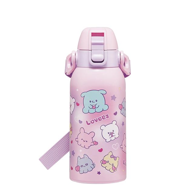 直飲みダイレクトボトル らぶい〜ず 600ml STCH6 [キャラクター 女の子 水筒 水分補給 ワンプッシュ 肩紐 保冷 スケーター]