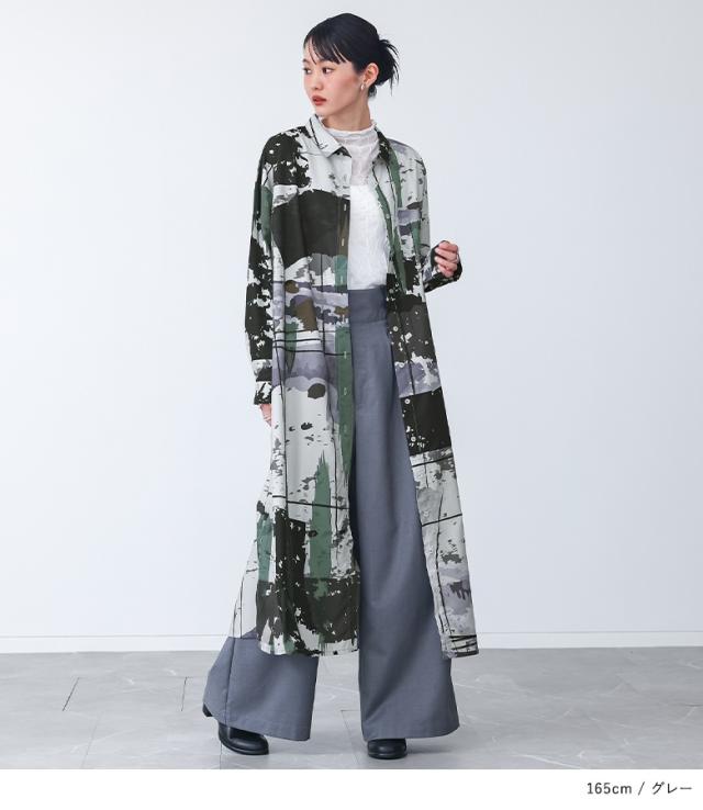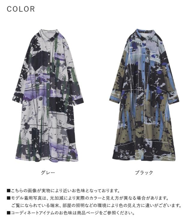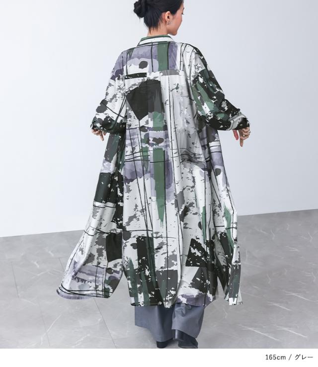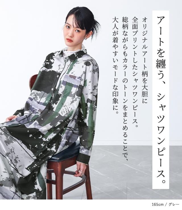 ワンピース 長袖 レディース ドレス ロング丈 シャツワンピース ロングシャツ 春 秋 羽織 総柄 アート柄 サイドスリット ゆったり 体型カバー 【TP】 シャツ 羽織り ロングワンピース シャツワンピ 襟付き マキシ丈 タック Iライン オリジナル プリント すっきり見え レイヤード 重ね着 ポケット 夏 ロングシーズン カジュアル シンプル モード マニッシュ キレカジ フェミニン ゆる 楽ちん 二の腕カバー Sサイズ Mサイズ Lサイズ LLサイズ 3Lサイズ XLサイズ フリーサイズ ぽっちゃり 体形カバー 着痩せ 大きいサイズ プラスサイズ 10代 20代 30代 40代 50代 60代 低身長 高身長 女子会 オフィス 通勤 通学 お買い物 お出掛け 旅行 リゾート レジャー おしゃれ お洒落 トレンド 流行 kOhAKU コハク 大人女子 大人可愛い お洒落可愛い 大人カジュアル ラフ スタイリッシュ 洗練 エッジィ 上品 きれいめ かっこいい osharewalker オシャレウォーカー おしゃれうぉーかー グレー 灰色 ブラック 黒 マルチカラー ミックスカラー[ID]11dp03l[kOhAKUアート柄シャツワンピース]