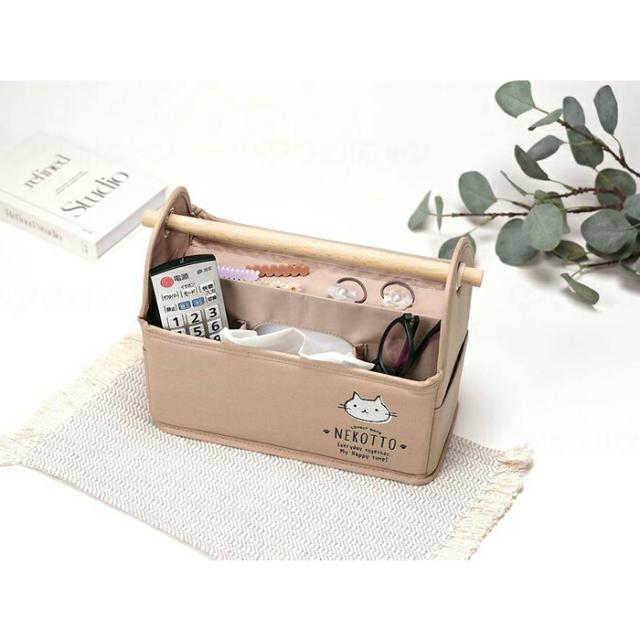 リモコン&ティッシュケースラック ねこっと 小物入れ 小物収納 仕切り付き 持ち手付き 整理整頓 ティッシュ収納 リビング収納 猫グッズ スケーター
