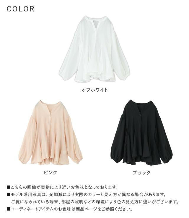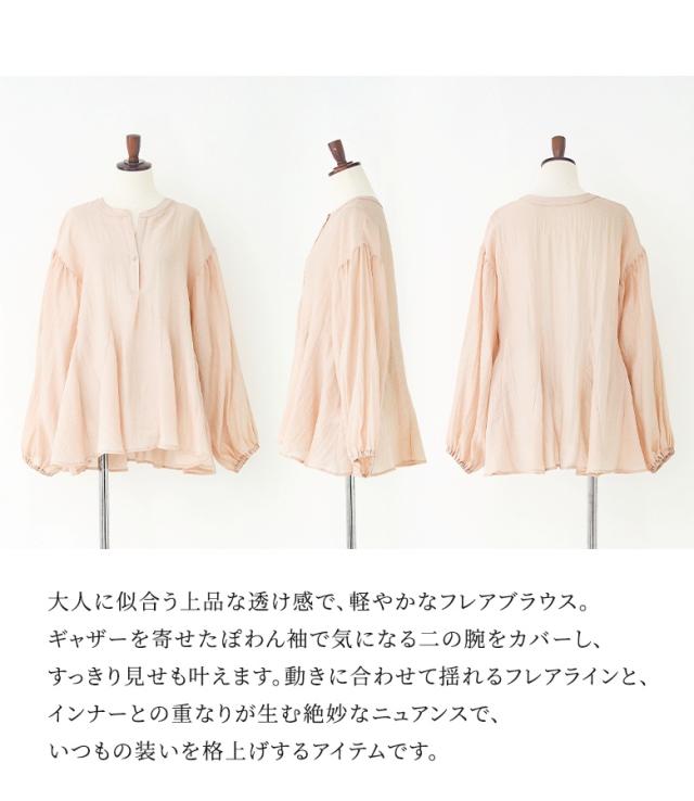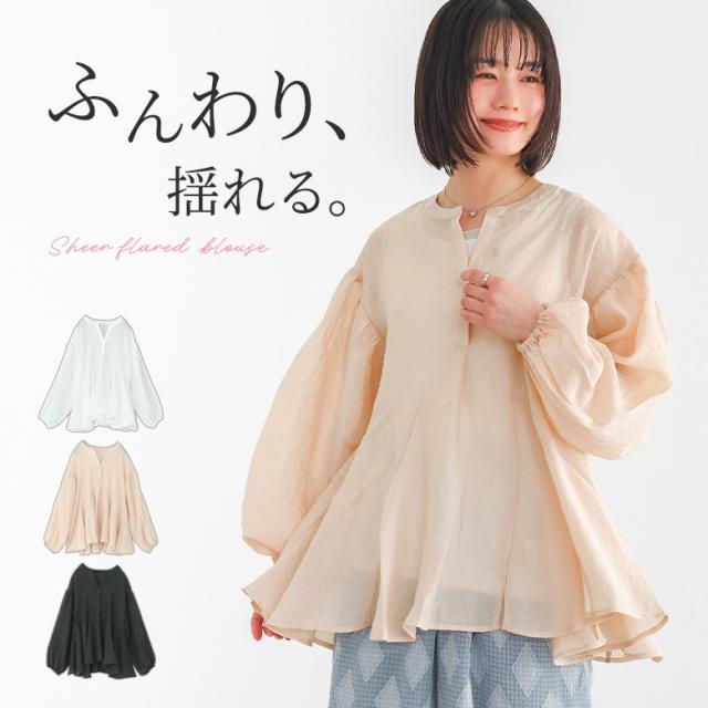 ブラウス レディース トップス シャツ 長袖ブラウス フレアデザイン ぽわん袖 ボリューム袖 バルーンスリーブ ギャザー 春 夏 オシャレウォーカー 【TP】 プルオーバー ボタンシャツ ノーカラー スキッパー スキッパーシャツ スキッパーデザイン ボタン付き 長袖 パフスリーブ バルーン袖 袖コンシャス ミディ丈 ミドル丈 ドロップショルダー フレア バルーン 無地 シースルー シアー 透け感 洗える おうちで洗える 薄手 涼しい カジュアル レトロ クラシカル シンプル ナチュラル キレカジ フェミニン ガーリー 可愛い系 大人女子 大人可愛い お洒落可愛い 大人カジュアル 上品 きれいめ ベーシック ニュアンス ラフ 二の腕カバー Sサイズ Mサイズ 10代 20代 30代 40代 50代 60代 低身長 高身長 女子会 オフィス 通勤 通学 お買い物 お出掛け 旅行 おしゃれ お洒落 トレンド 流行 osharewalker 白色 白 オフホワイト ピンク 桃色 桃 ブラック 黒色 黒[ID]11tp01j[フレアーブラウス]