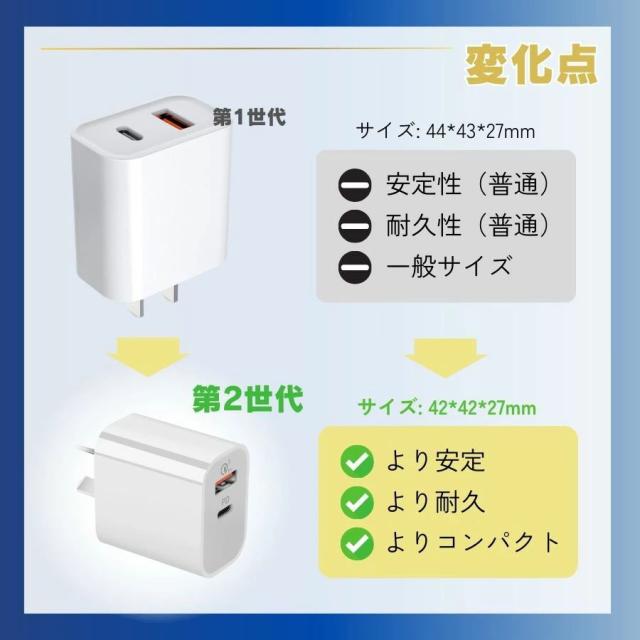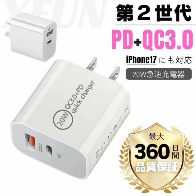 【安心保証】Type C 急速充電器 PD 20W 2ポート USB-C + USB-A 2口 Type C アダプター iPhone 17/16/15/14/13 iPad Android スマホ タブレット 対応 コンパクト 旅行用 iPhone 充電器 Android 充電器 AC充電器 タイプC プラグ 国内 海外 兼用