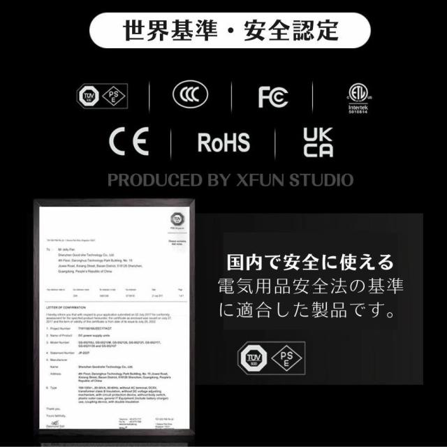 【PSE 認証済み】過電流・過電圧・過熱保護機能搭載で安全。