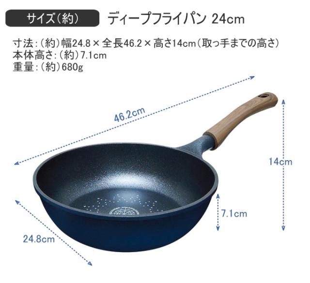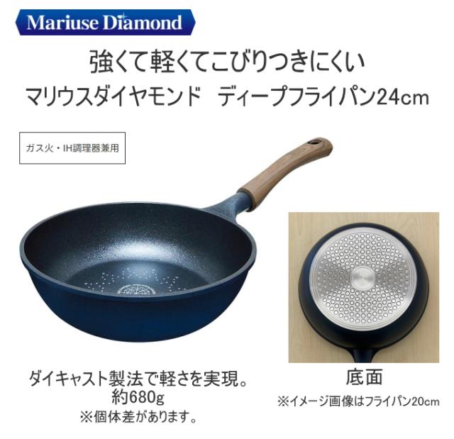 マリウスダイヤモンド ディープフライパン 24cm 送料無料 ガス火 IH200V ふっ素加工 軽量 フライパン 24cm 深型 ディープパン ダイキャスト製法 こびりつきにくい 丈夫 キッチン用品 調理器具 新生活 新成人 一人暮らし ひとり暮らし ナンセンジャパン