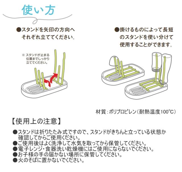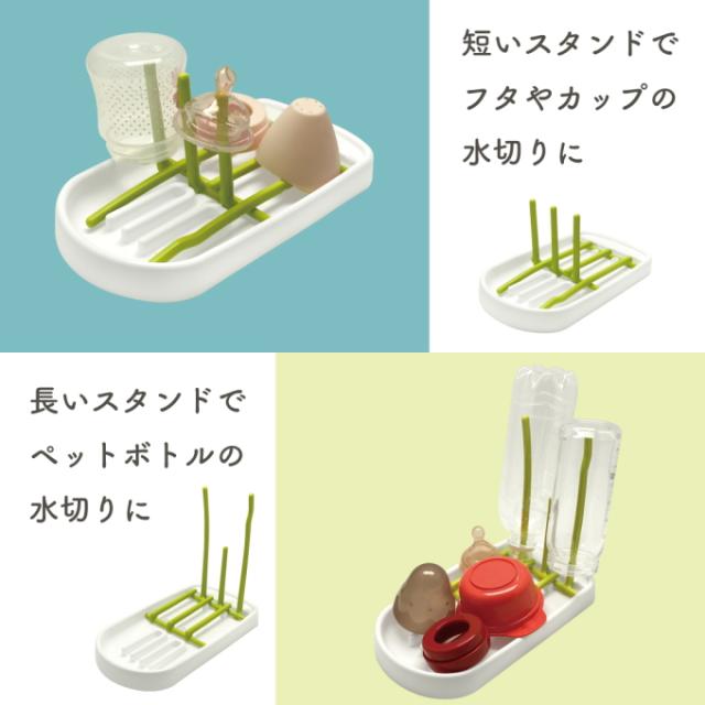 ほ乳びん・マグ・コップ・ペットボトルなどを立てることができるシンプル&コンパクトな水切りトレーです。 短いスタンドと長いスタンドを立てることでほ乳びんやパーツ類、食器類などの水切りができます。 スタンドを閉じればマグカップ・コップなどが置けるコンパクトな水切りトレーに。 コンパクトサイズなので、帰省などの外泊場所でもスペースを取らずに水切りできます。 出産入院や里帰りなどの際にも便利なアイテムです。 ※ほ乳びん等は商品に含まれません。 |