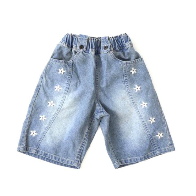 【10%OFF 2026夏物 キッズ 子供 女の子】 RIO(リオ) 接触冷感 アトリエデニム・フルール お花刺繍9分丈パンツ