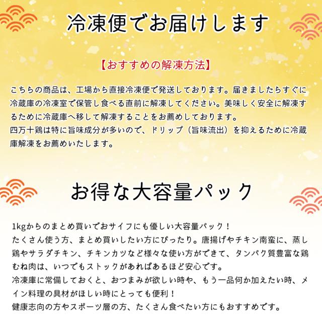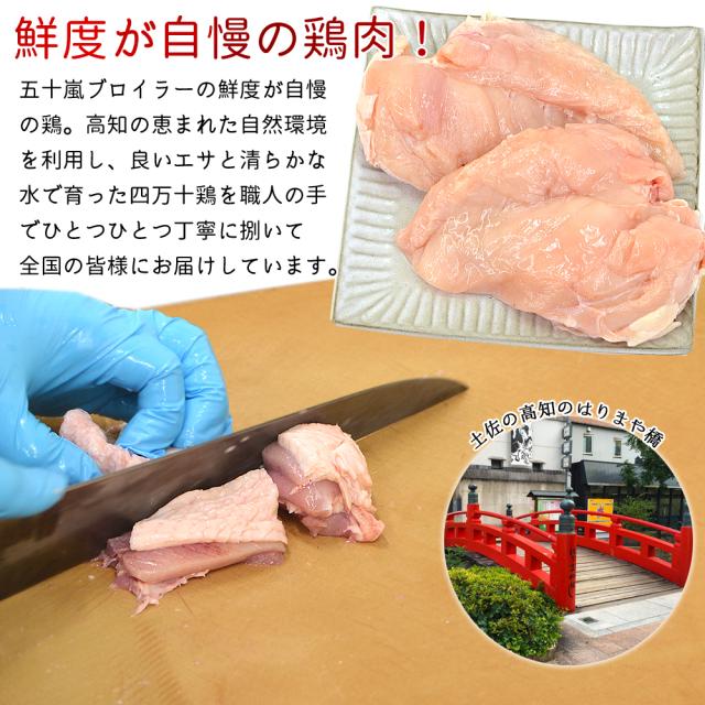 四万十鶏は、高知県の自然豊かな環境を利用して育てられる銘柄鶏で、一般のブロイラー鶏より飼育日数が長いので肉感があり旨味が強いと言われています。むね肉は、こってり感があるもも肉と違って脂が少なくさっぱりしていますが、特にこちらの四万十鶏は上品な旨味があります。健康志向の方やスポーツ層の方がよく唐揚げに使われる部位のようです。