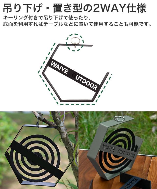 蚊取り線香ホルダー 蚊取り線香 蚊取り線香入れ 吊り下げ 置き型 鉄製 虫除け リング 簡単取付 固定 キャンプ アウトドア