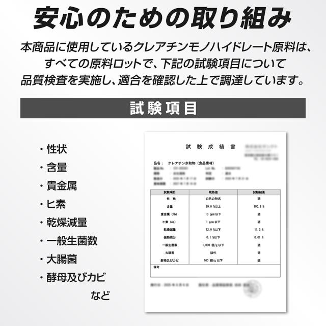 ・クレアチンモノハイドレート「99.9%」の高純度パウダー
