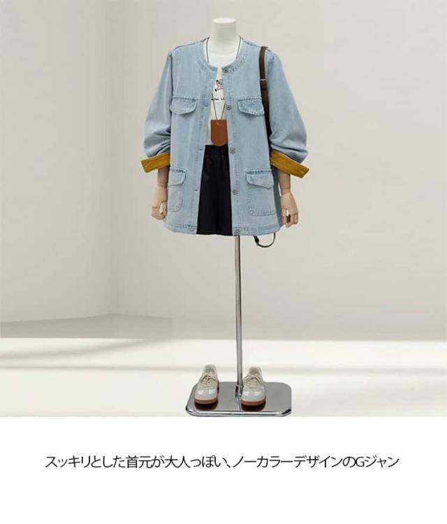 | スッキリとした首元が大人っぽい、ノーカラーデザインのGジャン ヒップが隠れるミドル丈が体型をさりげなくカバーし、パンツにもワンピースにも合わせやすい一着です。 トレンドに左右されないなデザインで、コーデに迷いません◎ ワンピースにさらっと羽織って女性らしく、デニムやワイドパンツと合わせてカジュアルにも◎ 羽織るだけで抜け感が出て、季節の変わり目にも大活躍間違いなしです。 | |