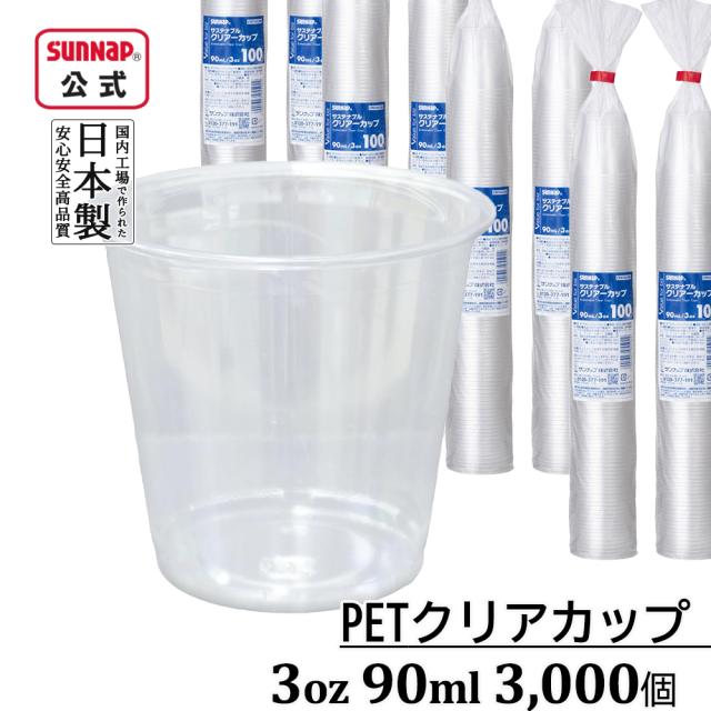 業務用 PETクリアカップ 90ml 3oz 3,000個【プラカップ 3オンス 試飲 利き酒 試食 テイスティング ソムリエ 日本酒 ワイン 使い捨て 容器 C90100ZMR】