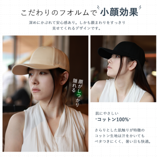 キャップ 帽子 ベースボールキャップ 顔隠し 遮光 レディース メンズ 男女兼用 UVカット アジャスタブル キャップ 小顔効果 深め メッシュ 大きいサイズ 綿 無地