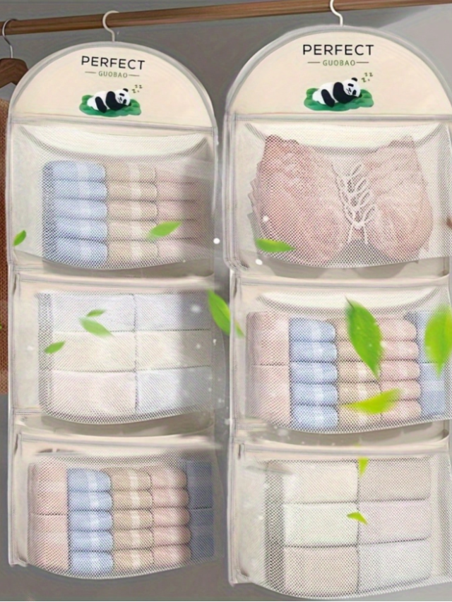 3段メッシュ収納バッグオーガナイザー ランジェリー、靴下、ブラジャー収納用、透明ポケット 壁掛け式 省スペース クローゼット収納、多層通気設計 ドミトリー、ホーム、ベッドルームの収納に