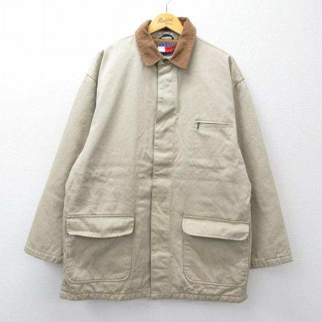 古着 トミーヒルフィガー 長袖 ブランド ジャケット メンズ 90年代 90s 襟コーデュロイ 大きいサイズ ロング丈 コットン ベージュ系他 内側キルティング spe 26feb25